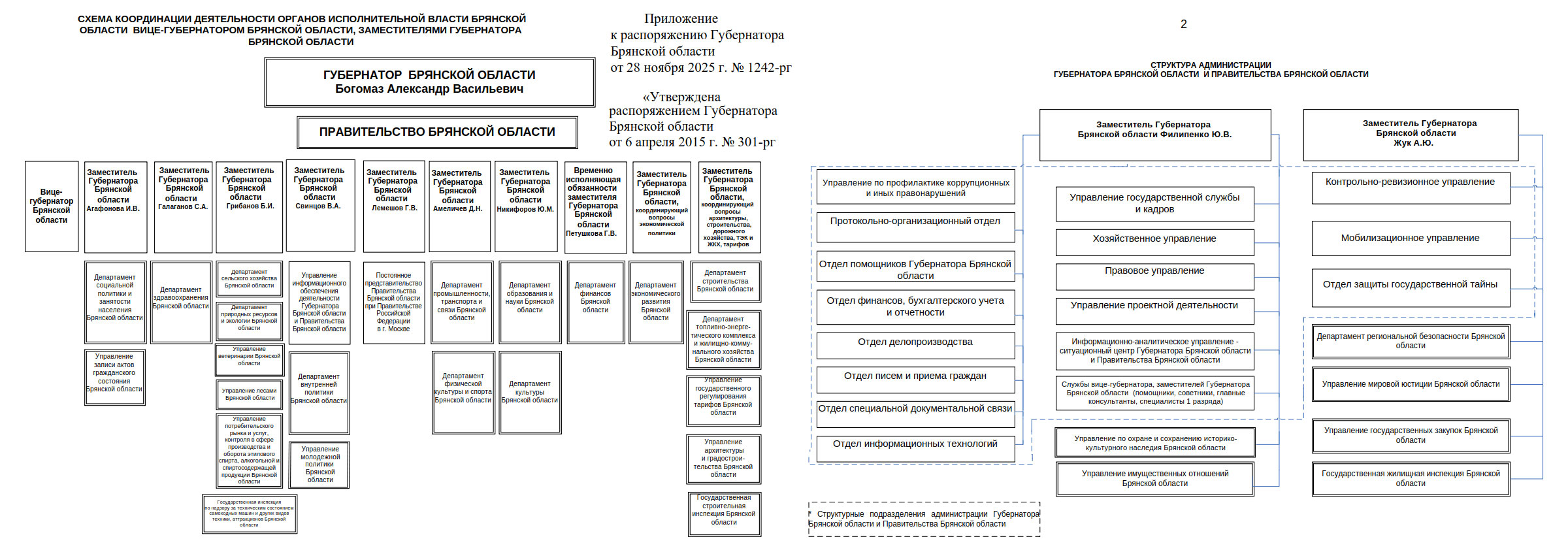 В соответствии с Уставом Брянской области, в целях совершенствования управления, осуществления действенного контроля за работой структурных подразделений администрации Губернатора Брянской области и Правительства Брянской области, координации деятельности исполнительных органов государственной власти Брянской области, эффективного взаимодействия с органами государственной власти Брянской области, органами государственной власти иных субъектов Российской Федерации, органами местного самоуправления, федеральными органами государственной власти, территориальными органами федеральных органов государственной власти, учреждениями, предприятиями и организациями независимо от форм собственности: