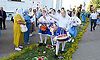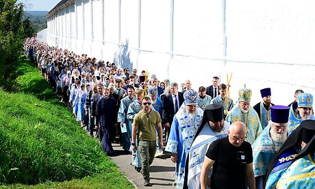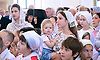 С молитвенным пением верующие прошли крестным ходом вокруг стен монастыря.