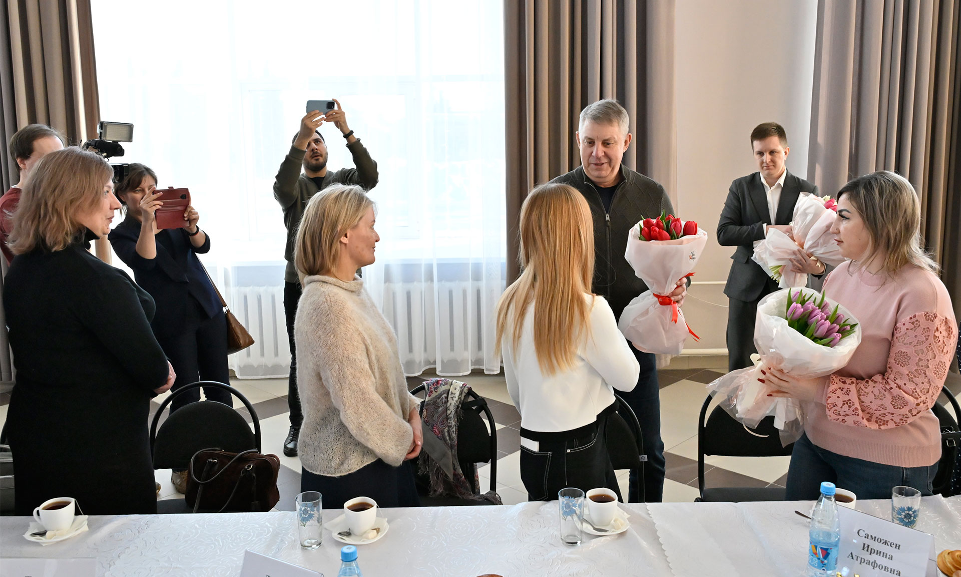Губернатор Александр Богомаз, руководитель оперативной группы Министерства обороны по Брянской области генерал-майор Валерий Золотухин и председатель Брянской областной Думы Валентин Суббот поздравили мам и вдов погибших защитников Родины.